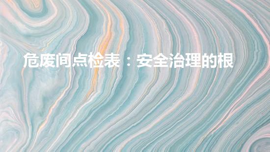 危废间点检表:安全治理的根本工具与实施要点  在化工、制药、电子等工业生产领域,危险废物的安全治理一直是环保差事的重中之重...